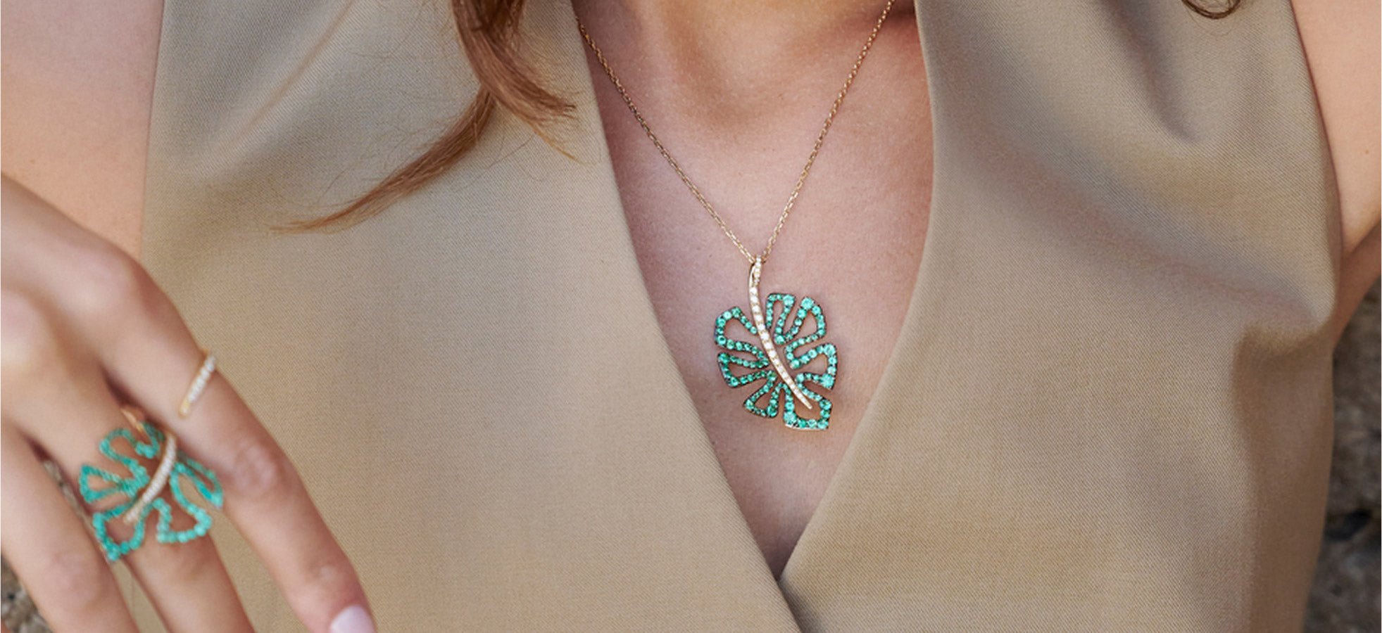 Linee audaci incontrano la purezza dei materiali: oro giallo, diamanti e smeraldi si uniscono per dare vita a gioielli che celebrano abbondanza, armonia e forza interiore.